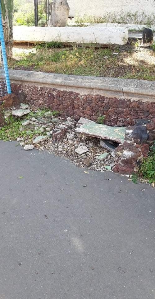 Lamentable estado del único parque para la urbanización de Eucaliptos 2 y el Cortijo de Belén en Jinámar (Telde). Más de 1000 familias dependen del único parque en toda la urbanización, pero este presenta socavones, muros rotos, no existe un sólo dispositivo para jugar los niños y lo peor de todo, numerosos cristales rotos por toda su superficie. Tampoco existe servicio de mantenimiento de jardinería. Pese a todo los vecinos y vecinas siguen pagando impuestos.