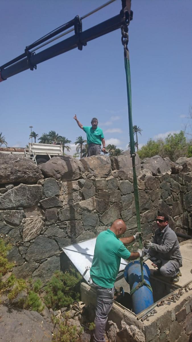 Monzón detalla que la intervención ha durado varias semanas y consistió en la retirada del material oxidado y obsoleto, la reparación de motores, la instalación de una nueva red de tuberías, el saneamiento de las válvulas de retención, la reparación y ajustes de los tubos de aspiración, y la limpieza de los filtros que retienen los residuos que llegan a las fuentes.