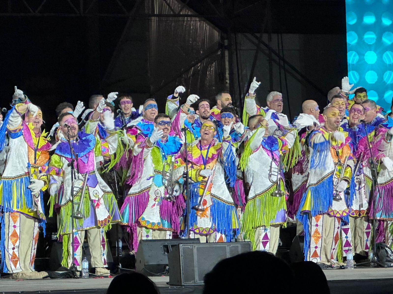 El escenario del parque de San Juan se llenó de color y micrófonos para dar vida a un espíritu murguero que contagió a todos los asistentes. Así, los cinco grupos carnavaleros protagonistas de la noche inundaron el Auditorio de emoción y alegría con sus letras y sus voces, arropados por aplausos y ovaciones.