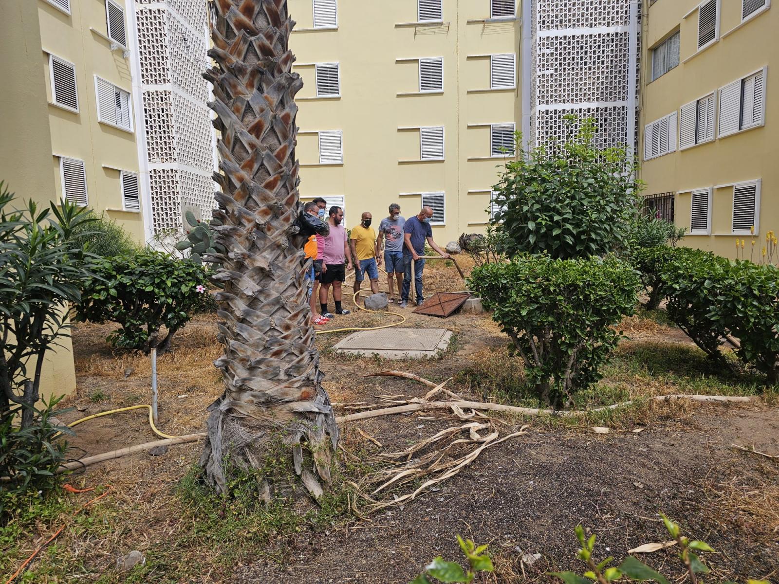 Vecinos de Las Remudas denuncian a través de ONDAGUANCHE que sus edificios están inundados de aguas fecales y piden la intervención urgente del Ayuntamiento de Telde. Especialmente grave es la situación de los bloques situados en la calle Alejo Carpentier. Afirman que desde el Ayuntamiento no le dan una solución y le pasan la pelota a Aguas de Telde o Parques y Jardines, pero la situación es insostenible ante un problema grave de insalubridad que afecta a miles de personas que residen en la zona. Aunque ya se han retirado miles de litros de aguas fecales con camiones cuba, el problema persiste porque no se ha reparado la avería de la tubería principal que está provocando las inundaciones de los bloques.