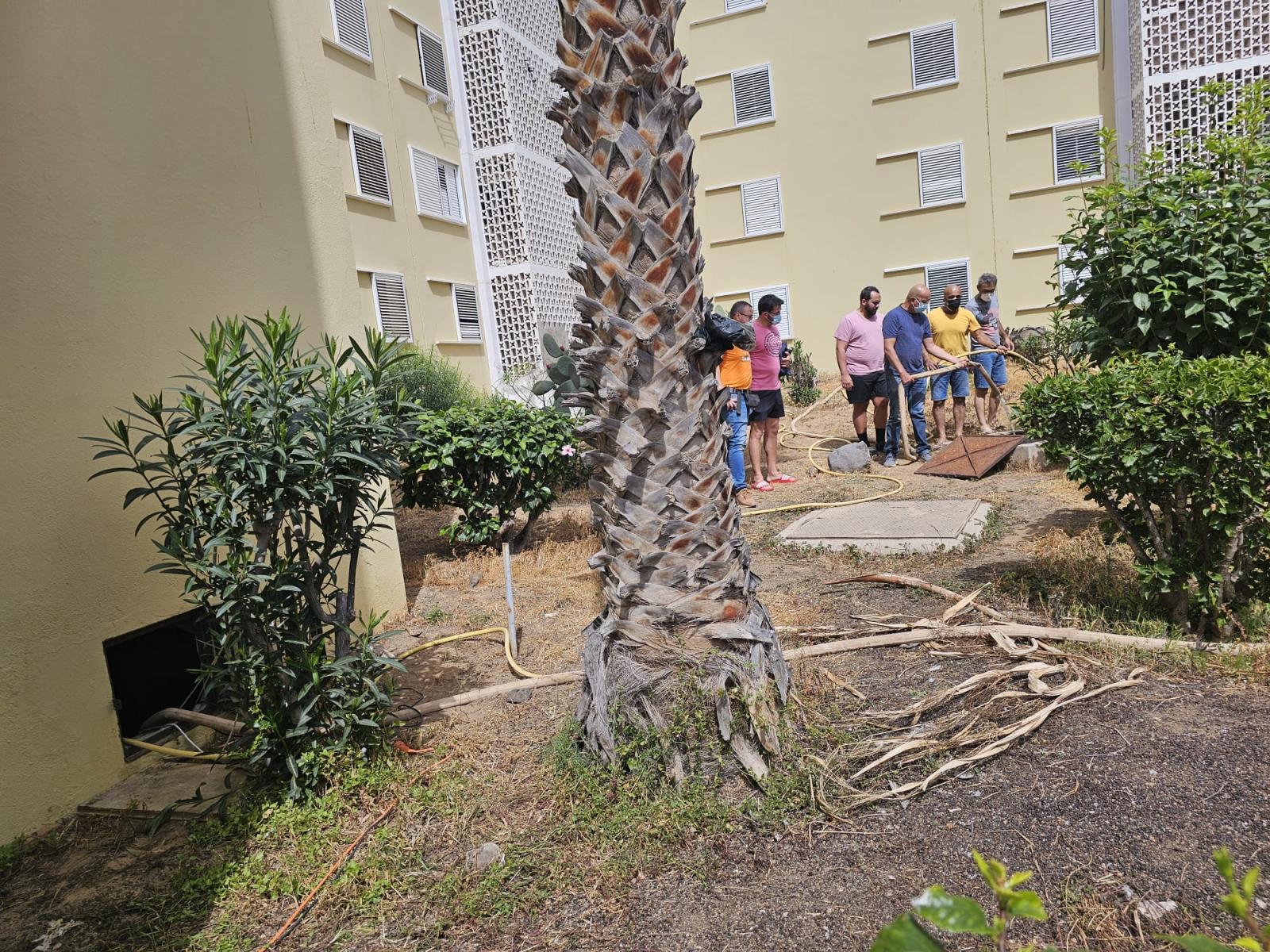 Vecinos de Las Remudas denuncian a través de ONDAGUANCHE que sus edificios están inundados de aguas fecales y piden la intervención urgente del Ayuntamiento de Telde. Especialmente grave es la situación de los bloques situados en la calle Alejo Carpentier. Afirman que desde el Ayuntamiento no le dan una solución y le pasan la pelota a Aguas de Telde o Parques y Jardines, pero la situación es insostenible ante un problema grave de insalubridad que afecta a miles de personas que residen en la zona. Aunque ya se han retirado miles de litros de aguas fecales con camiones cuba, el problema persiste porque no se ha reparado la avería de la tubería principal que está provocando las inundaciones de los bloques.