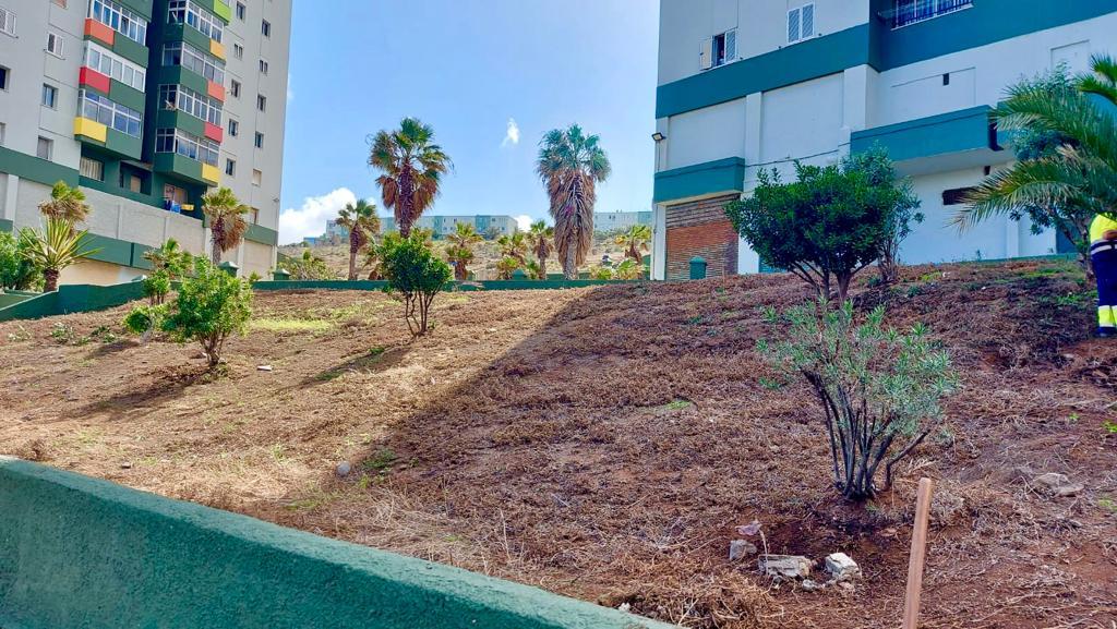 La Concejalía de Parques y Jardines, coordinada por el edil Álvaro Monzón, avanza en la limpieza de las zonas verdes del barrio teldense de Jinámar.