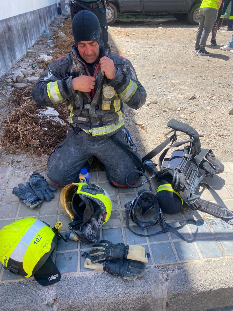 LOS BOMBEROS RESCATAN A UNA PERSONA ATRAPADA EN EL VORAZ INCENDIO DE UNA CASA EN EL BURRERO (INGENIO)