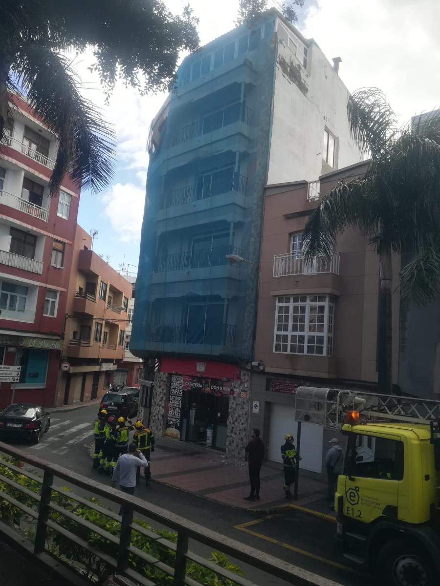 LOS BOMBEROS TIENEN QUE INTERVENIR POR LA CAÍDA DE CASCOTES EN UN EDIFICIO DE LA CALLE FRANCHY Y ROCA DE TELDE