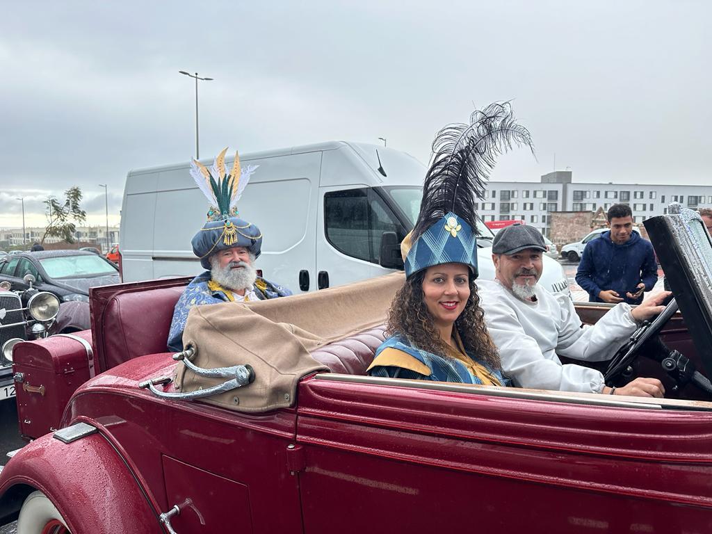Los Reyes Magos ya están en Telde. Los visitantes mágicos recorrieron en tres vehículos diferentes, uno para cada uno, y escoltados por Protección Civil, todos los recovecos de Jinámar, antes de poner rumbo a San Juan y, finalmente, llegar a San Gregorio, donde les esperaban cientos de niños y niñas cargados de ilusión, con ganas de entregarles sus cartas de deseos y sacarse fotos con ellos.