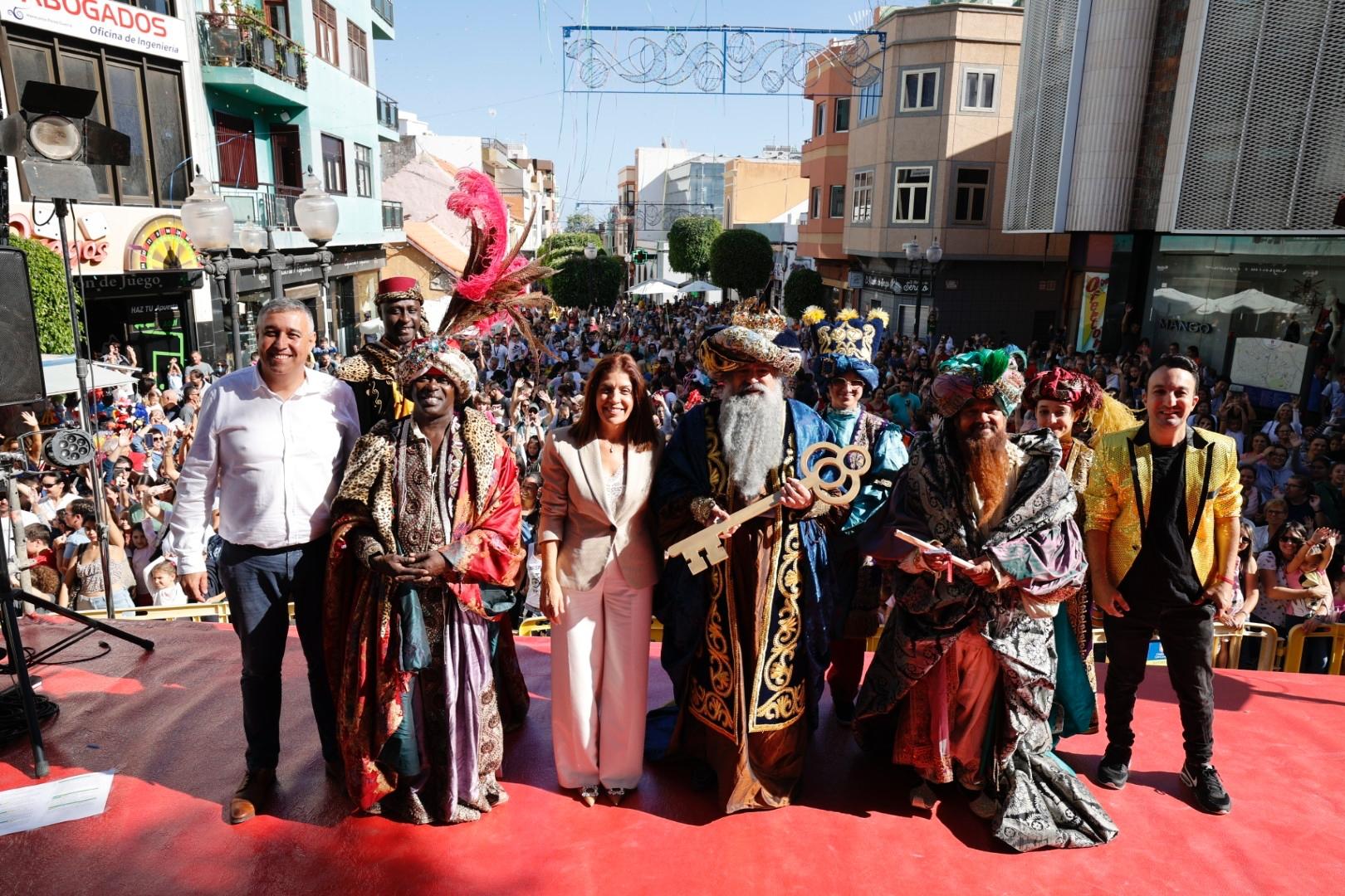La comitiva, escoltada por la Policía Local y Protección Civil de Telde, continuó el recorrido por Melenara y por El Calero para llegar a la plaza de San Gregorio, lugar del recibimiento oficial y donde les esperaba una multitud de personas, especialmente los pequeños y las pequeñas que querían entregarle en persona su carta. En este enclave de Los Llanos, la alcaldesa le entregó la llave de la ciudad, que abre las puertas de todas las casas para que puedan entregar los regalos, y les agradeció el largo viaje que realizaron para traer la ilusión al municipio. Por su parte, el edil de Festejos le hizo entrega de un mapa para que su trabajo sea más fácil durante la madrugada de este viernes.