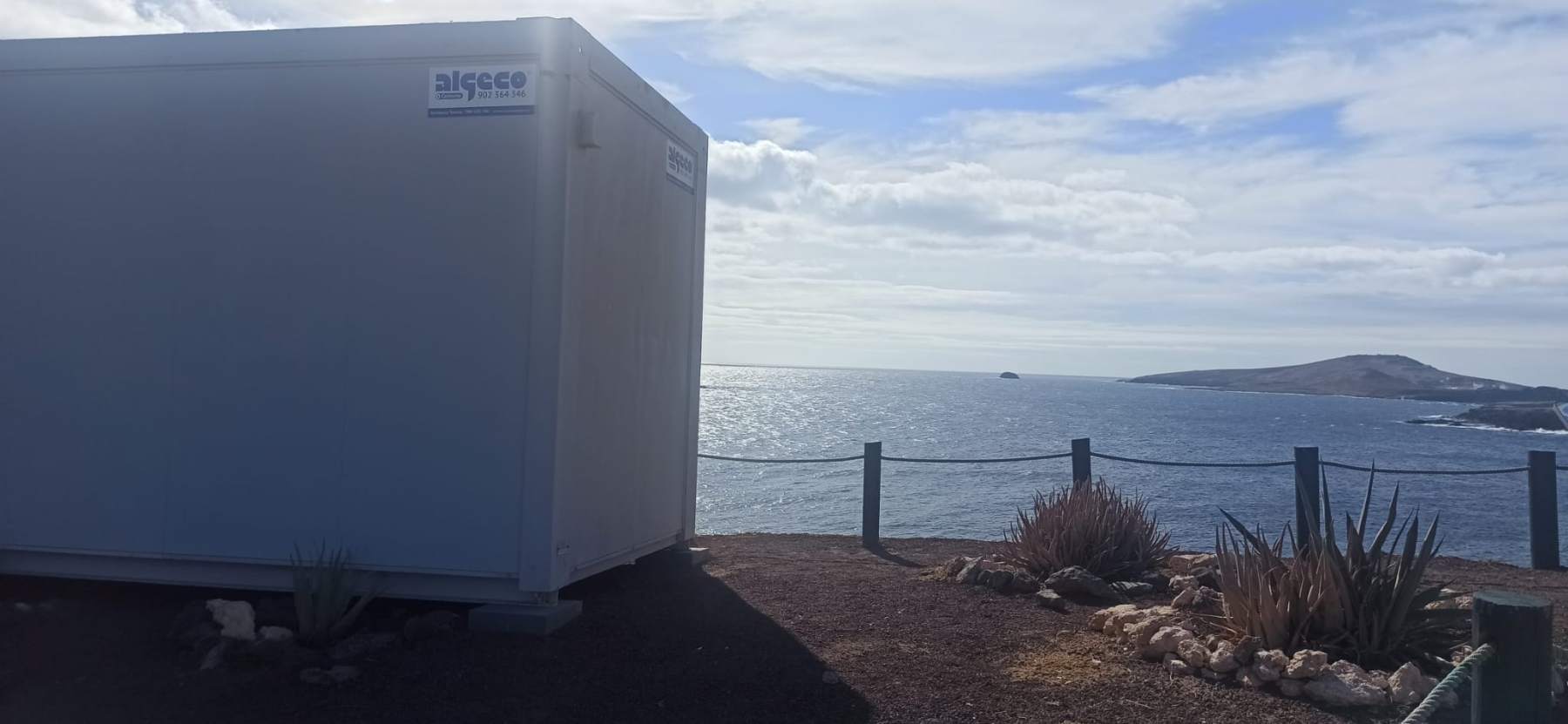 Malestar entre los vecinos de Tufia y múltiples visitantes de esta preciosa cala teldense, por la ubicación de una estructura modular tipo oficina de la empresa Algeco en el mismo mirador impidiendo la visión hacia el mar. ¿Qué hace ahí? ¿Qué función tiene? ¿Quién autorizó su instalación? ¿Hasta cuándo estará? ¿No había otro lugar mejor para situarlo?