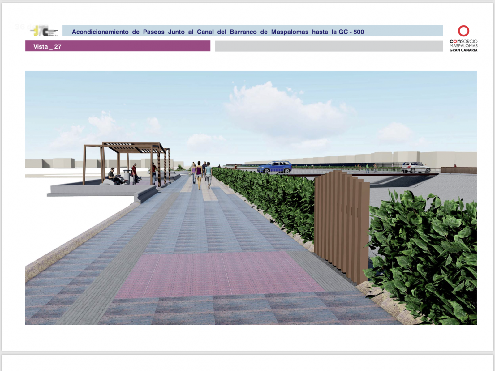 Recuperar los márgenes del Barranco de Maspalomas para su conversión en dos paseos homogéneos y modernos, dotados con carriles bici y peatonal habilitados para el paseo y la práctica deportiva, con diversas zonas confortables de sombra y descanso, conllevará una importante actuación de reposición y cambio en los firmes y escalinatas, en el sistema de alumbrado, los vallados del cauce, los dos puentes que lo atraviesan, el cerramiento exterior de los complejos turísticos y residenciales de la zona, y también en la cuidadosa reforestación vegetal y arbórea que habrá que ejecutar en la misma.