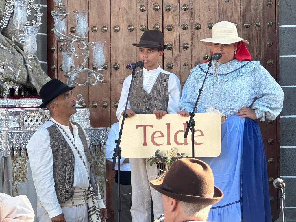 Néstor Martel Rodríguez y Yuneima del Carmen Lozano Collado fueron los niños decimistas de Telde encargados de recitar sus versos ante la Patrona. Así, Tajea y Torna interpretaron una folía para la Virgen, tras el desfile, marcado por el folclore y bailes tradicionales y la participación de los 21 municipios de la Isla y del Cabildo de Gran Canaria, que ofrecieron lo mejor de sus cosechas.
