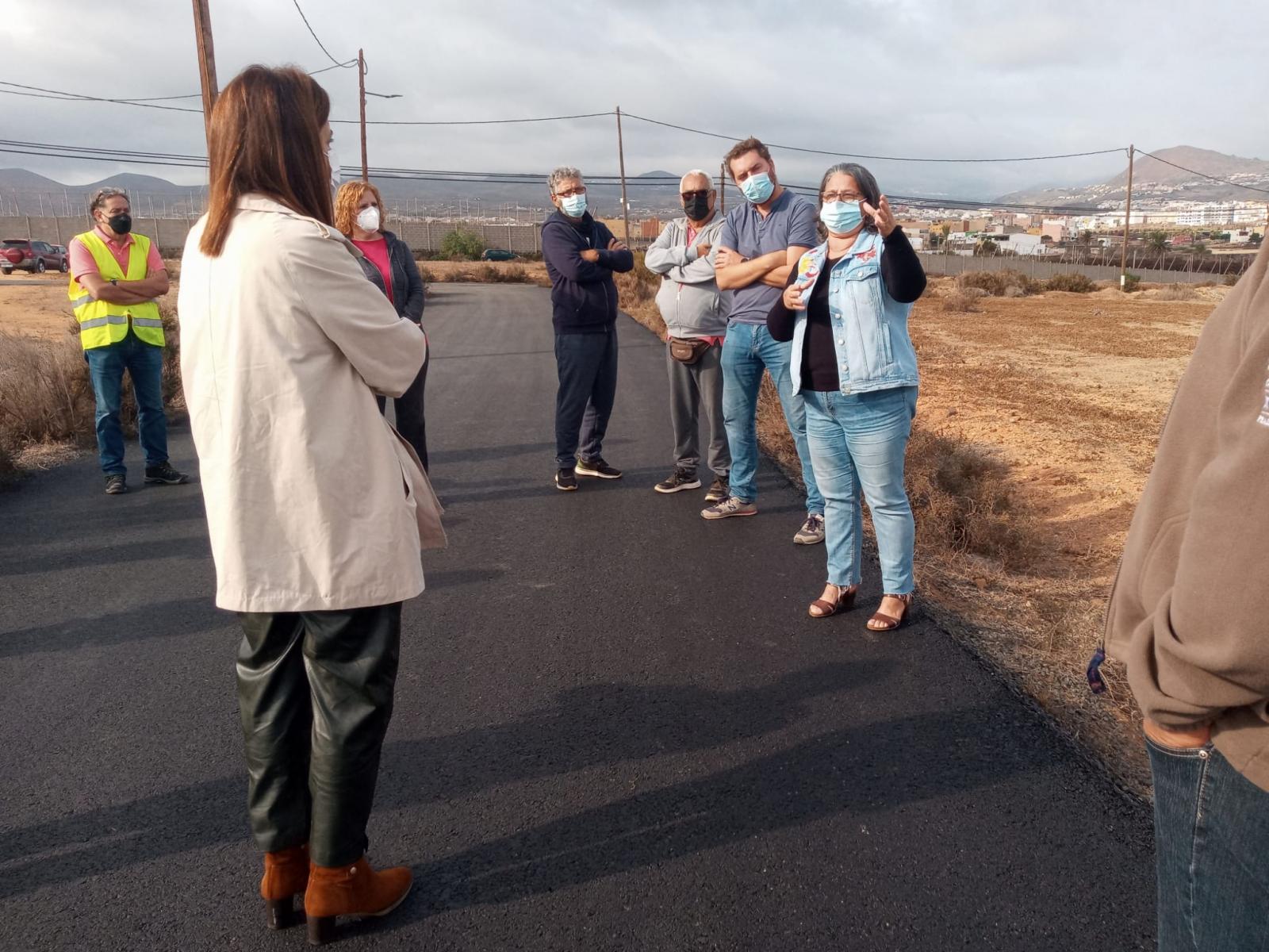 La alcaldesa de Telde, Carmen Hernández, y el concejal de Vías y Obras, Eloy Santana, visitaron este viernes la carretera que une El Caracol con Pedro Paso, una de las vías rurales repavimentadas por la Consejería de Sector Primario del Cabildo de Gran Canaria a instancias del Ayuntamiento de Telde.