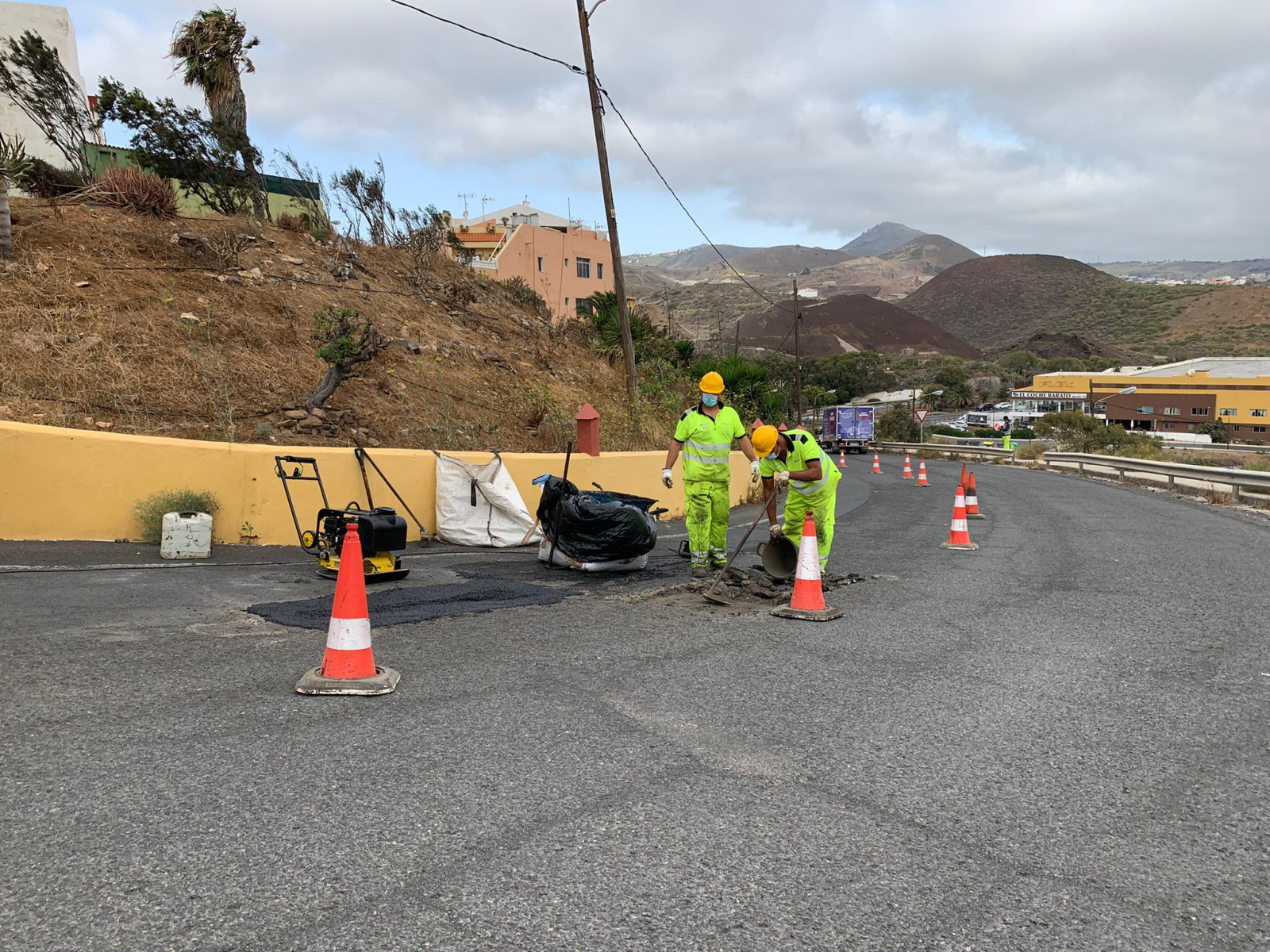 El Ayuntamiento de Telde está mejorando estos días la seguridad en la carretera principal de La Primavera dentro del plan de mantenimiento de las vías de la ciudad.