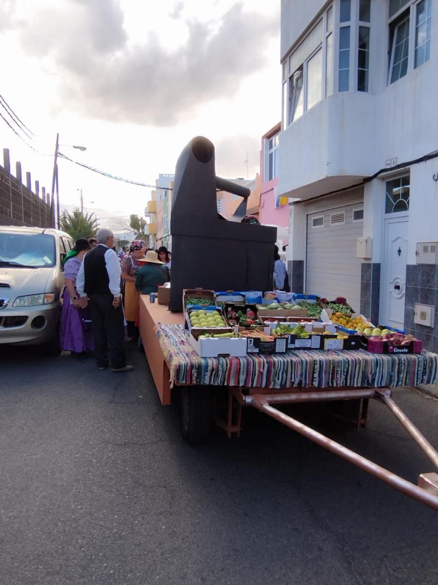Durante la romería, los participantes pudieron disfrutar de pellas de gofio, papas arrugadas y bocadillos de chorizo de Teror, acompañados por música y cánticos y un inmenso fervor que unió a toda la comunidad que forma el barrio de El Calero.
