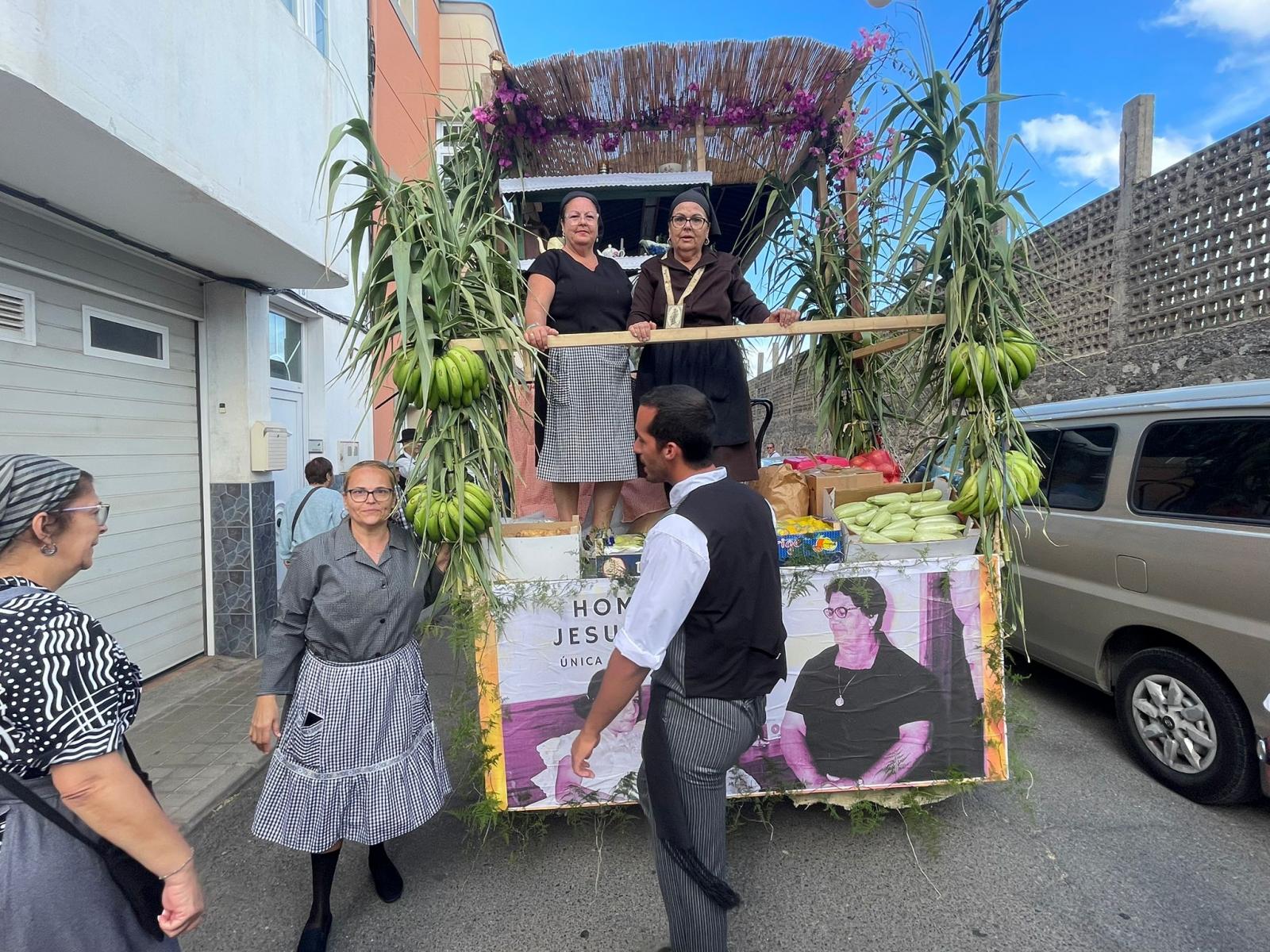 Durante la romería, los participantes pudieron disfrutar de pellas de gofio, papas arrugadas y bocadillos de chorizo de Teror, acompañados por música y cánticos y un inmenso fervor que unió a toda la comunidad que forma el barrio de El Calero.