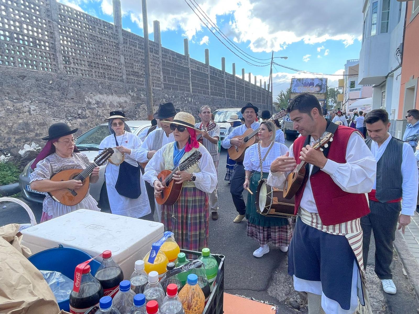 Durante la romería, los participantes pudieron disfrutar de pellas de gofio, papas arrugadas y bocadillos de chorizo de Teror, acompañados por música y cánticos y un inmenso fervor que unió a toda la comunidad que forma el barrio de El Calero.