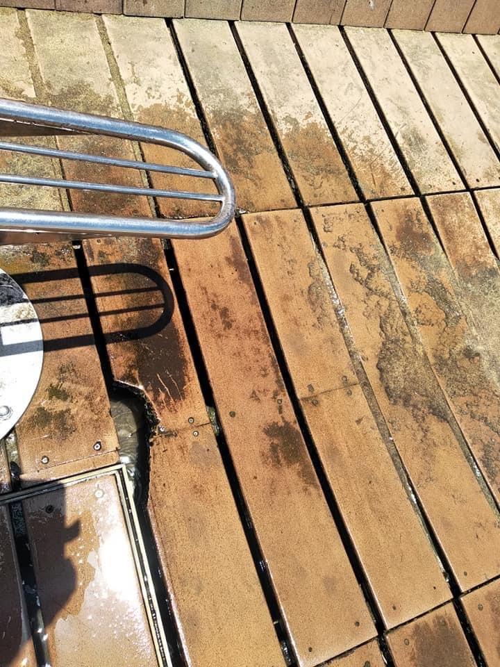 Detallábamos el estado lamentable de las duchas y lavapiés, que ocasionan  inseguridad para los usuarios, así como el deteriorado estado de las pasarelas de accesibilidad a las mismas.