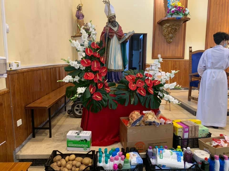 Caserío de Gando ofrendó este sábado a su patrono San Fermín con una misa en la que un grupo de vecinos hizo entrega de alimentos para las familias menos favorecidas.