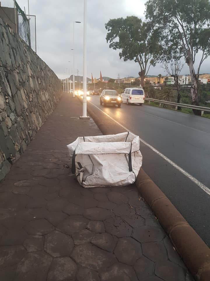 Usuarios del vial peatonal de San José de Las Longueras han remitido una galería de fotos a ONDA GUANCHE denunciando el bloqueo del paseo con bolsas llenas de rastrojos que han depositado operarios municipales de Telde en el camino tras realizar labores recogida de hierbajos y rastrojos de la zona.