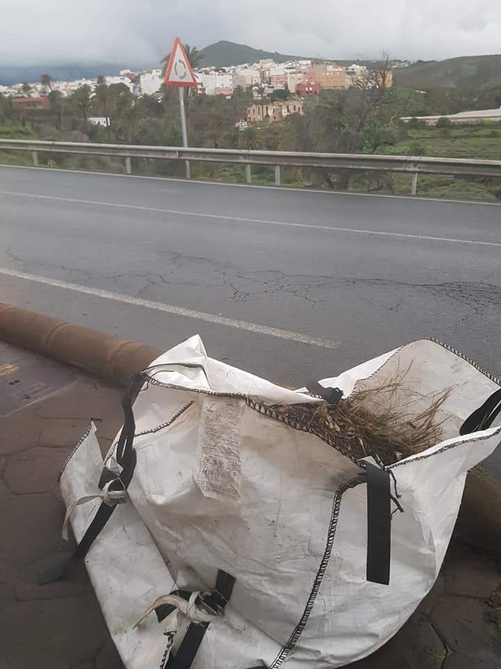 Usuarios del vial peatonal de San José de Las Longueras han remitido una galería de fotos a ONDA GUANCHE denunciando el bloqueo del paseo con bolsas llenas de rastrojos que han depositado operarios municipales de Telde en el camino tras realizar labores recogida de hierbajos y rastrojos de la zona.