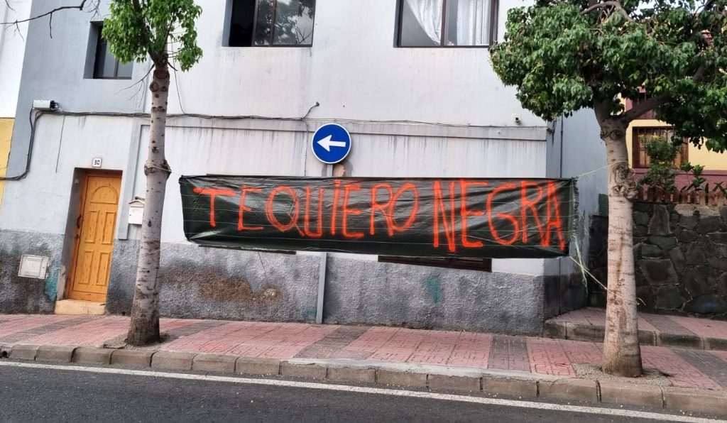 La centenaria ciudad de Telde no siempre es noticia por negligencias políticas o corruptelas. La prueba la encontramos este miércoles en la calle Guadarteme a la altura del número 30, próxima al parque Franchy y Roca, donde un improvisado Romeo declaró todo su amor con una original pancarta atada a dos árboles donde se podía leer el texto: «Te quiero negra».
