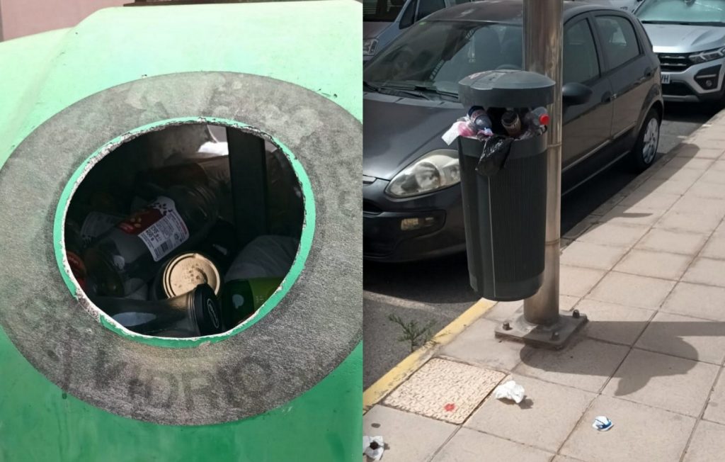 Vecinos del entorno de El Roque en San Gregorio (Telde), denuncian a través de ONDAGUANCHE que las papeleras están llenas de basura sin cambiar desde hace días. Los contenedores de vidrio presentan un aspecto similar, rebosando envases desde hace más de 15 días. Las zonas más castigadas son las calles Antonio Betancor y Marcos García del Castillo. «Piden que reciclemos pero no se molestan en retirar los residuos», señalan algunos vecinos molestos con esta situación para añadir que «recogen de las calles principales, pero se olvidan de las secundarias o menos visibles como estas».