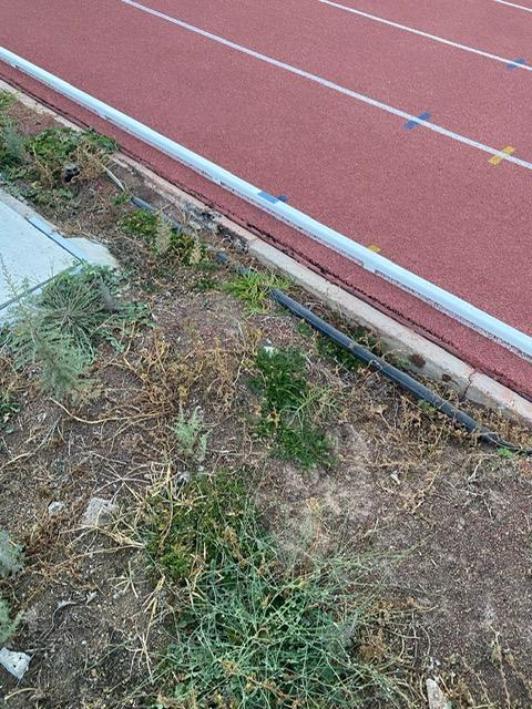 Lo mismo ocurre con las zonas verdes y todo el césped del recinto deportivo, que se dejó secar y ha terminado por sedimentar y endurecer el suelo. Ahora tendrá que retirarse y replantarse en óptimas condiciones para que la pista de atletismo pueda homologarse para la competición. Además, para homologarla deberá dotarse a las instalaciones de un técnico supervisor permanente, y también revisarse el acabado definitivo del nuevo tartán colocado a la pista, porque presenta signos de mala ejecución, incluso con tuberías al descubierto. Está mal cortado y eso provocará filtraciones de agua, burbujas y el crecimiento de hierbas que acabarán por volver a estropearlo malogrando la inversión pública realizada.