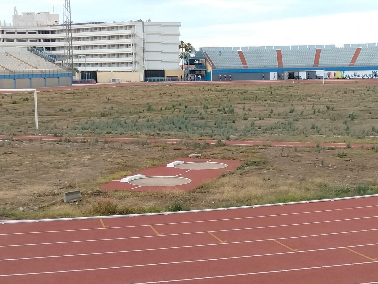 Esa falta de atención, limpieza y mantenimiento en general es muy preocupante en el Estadio de Maspalomas, sobre todo en las zonas del recinto dedicadas a la práctica del atletismo y mucho más en el césped del terreno de juego, convertido en un patatal impracticable.
