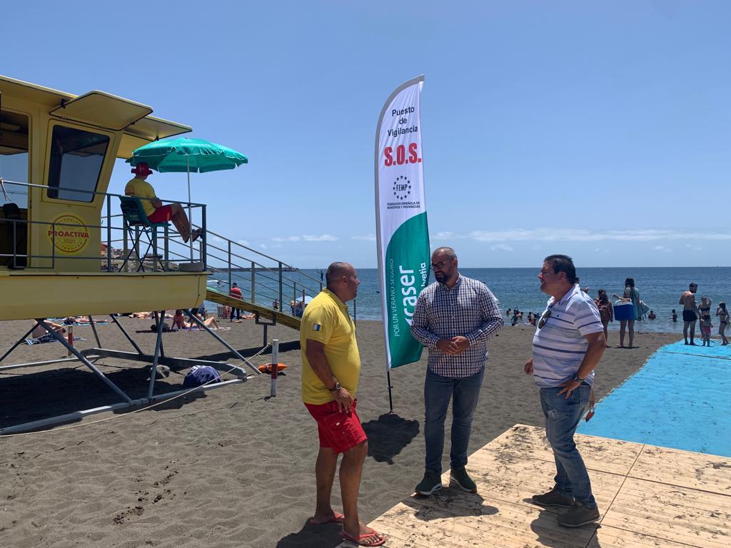 El responsable del área, Jonay López, acudió a la playa de Melenara, una de las calas que se beneficiarán del material, en el momento de su colocación, en donde aseveró que esta donación suma recursos a un servicio de Salvamento y Socorrismo “puntero” en la Isla.