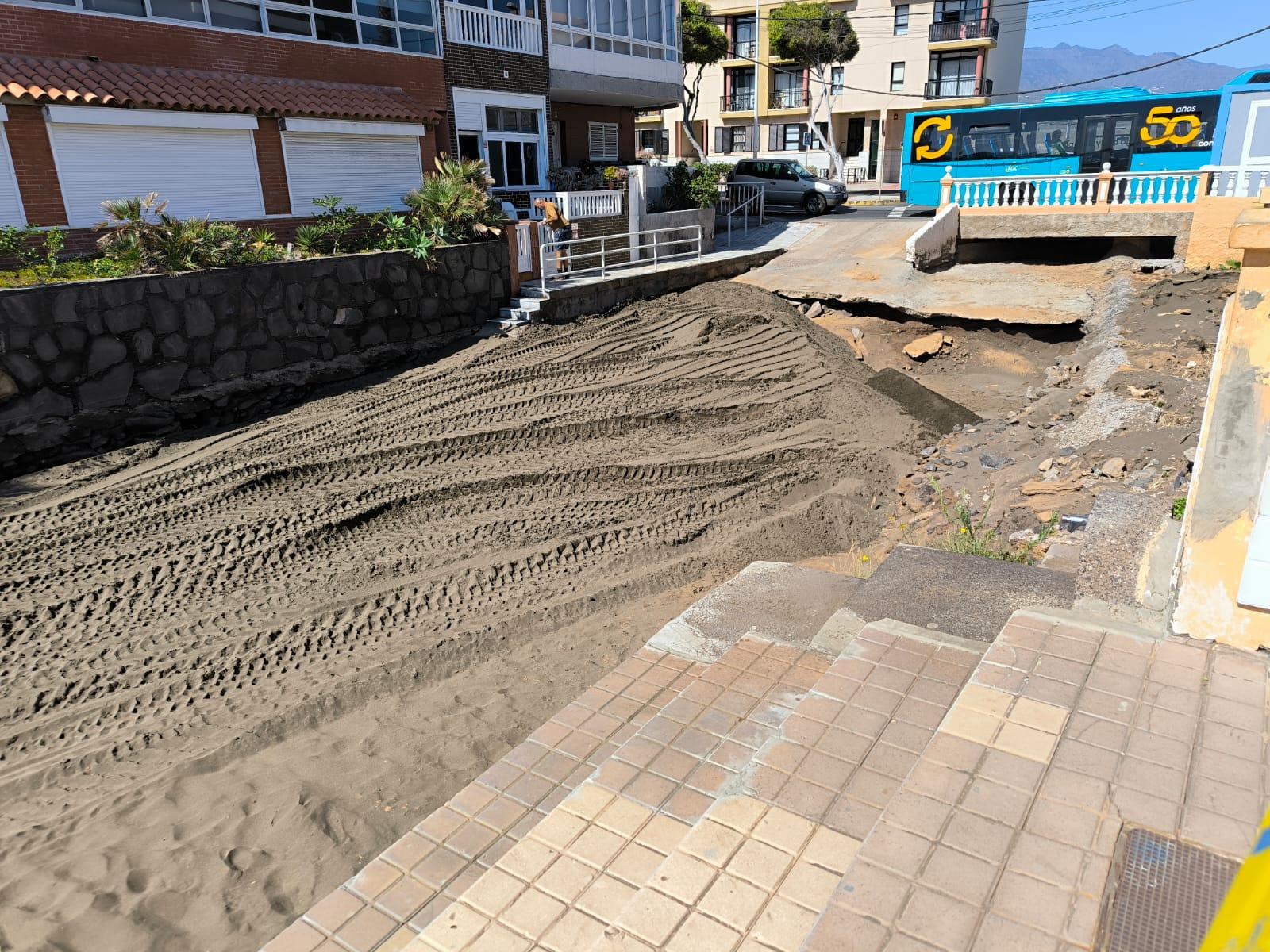 La actuación también incluyó la recolocación de la arena en la desembocadura del barranco, permitiendo así restablecer completamente el acceso y garantizar el correcto funcionamiento del servicio de limpieza de la playa.