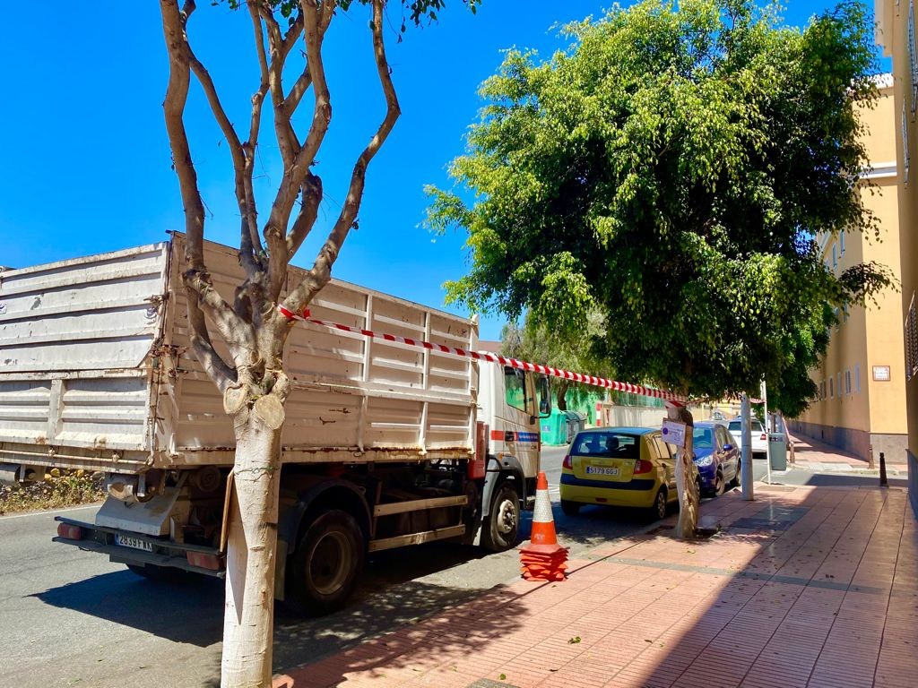 El área de Parques y Jardines del Ayuntamiento de Telde, dirigida por el edil Álvaro Monzón, avanza en su programación anual de poda y mantenimiento de la arboleda de los diferentes barrios del municipio.