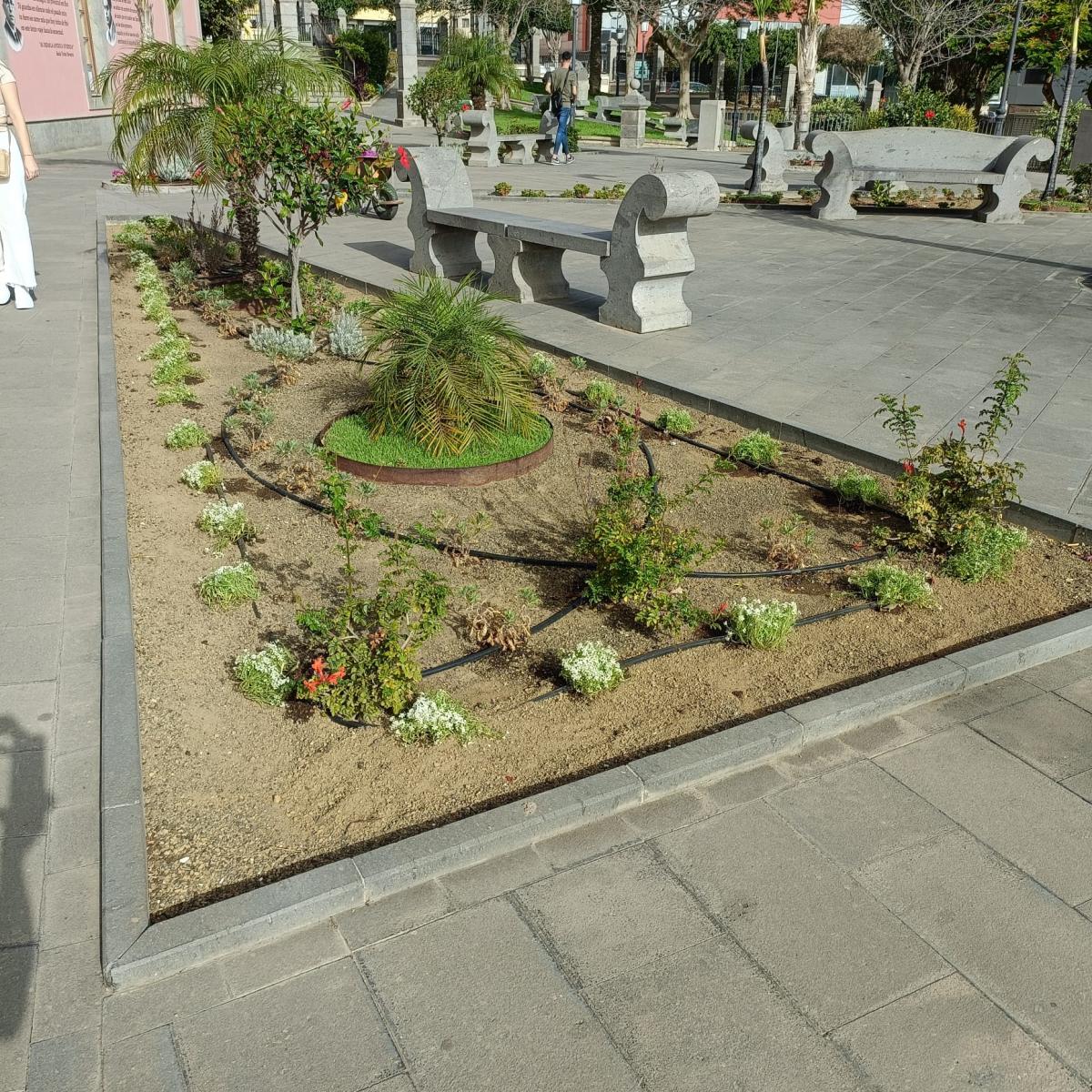 Concretamente, se han colocado plantas en zonas de parterres en el Parque Arnao, en las plazas de San Gregorio y San Juan y en la rotonda del Juego del Palo, en El Calero, hasta el momento.