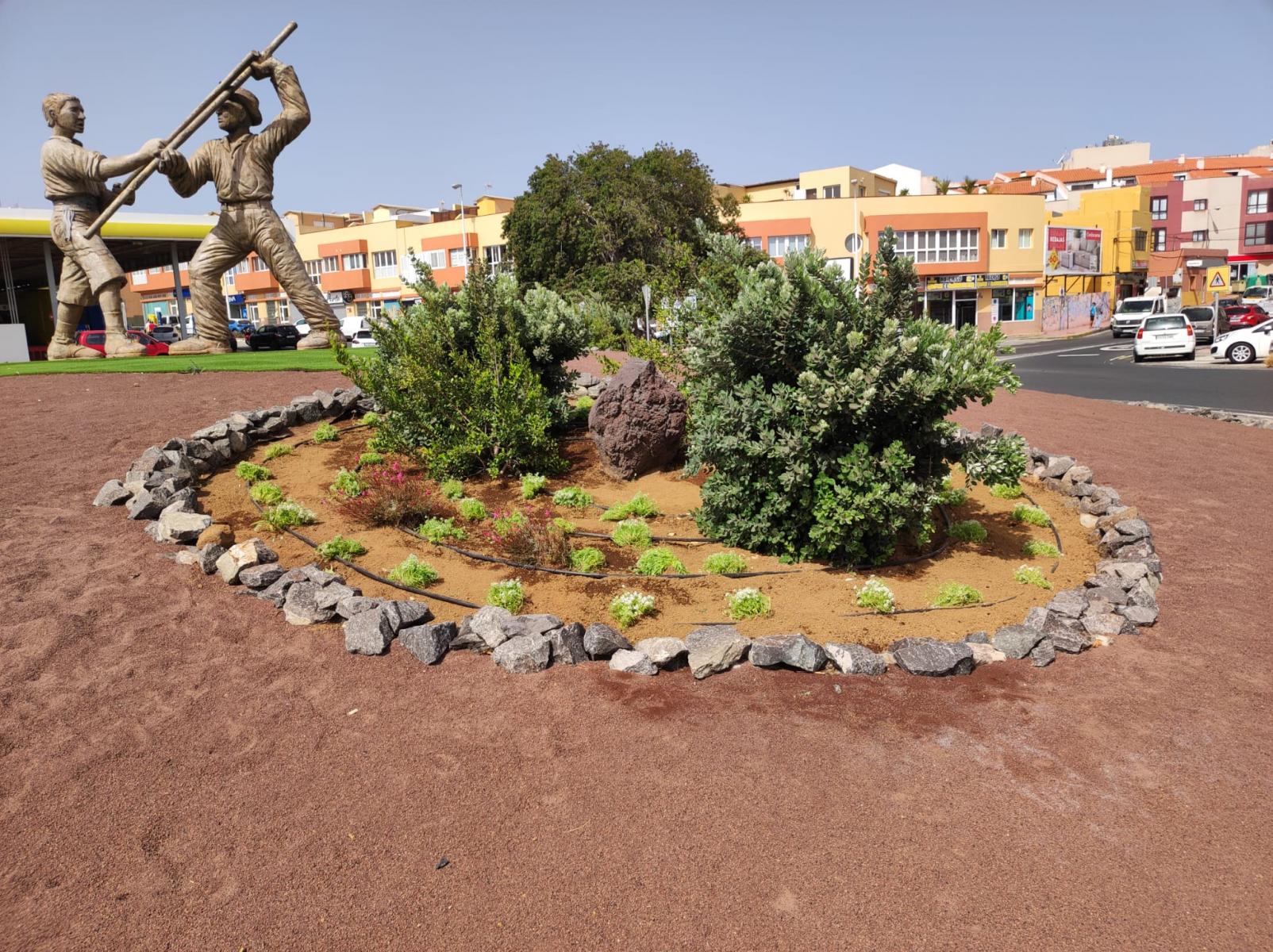 Concretamente, se han colocado plantas en zonas de parterres en el Parque Arnao, en las plazas de San Gregorio y San Juan y en la rotonda del Juego del Palo, en El Calero, hasta el momento.