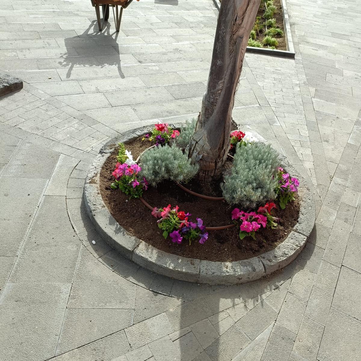 Concretamente, se han colocado plantas en zonas de parterres en el Parque Arnao, en las plazas de San Gregorio y San Juan y en la rotonda del Juego del Palo, en El Calero, hasta el momento.