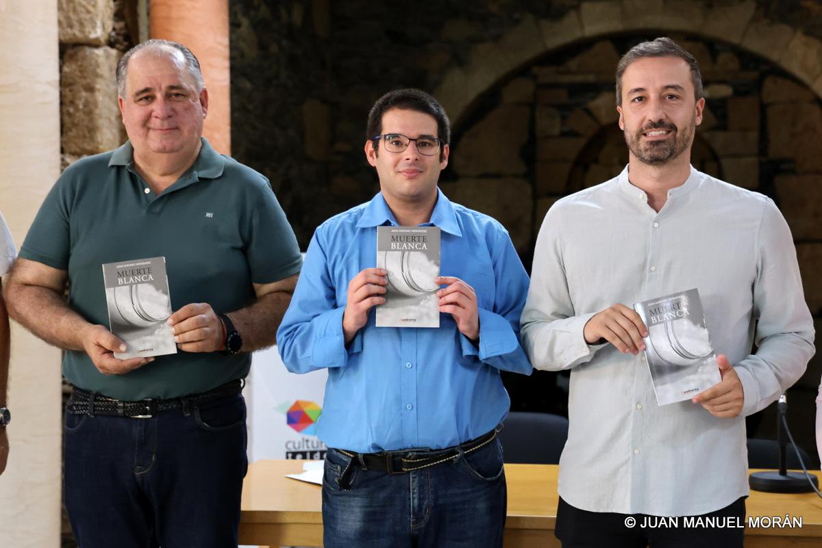 El periodista teldense Juan Antonio Hernández presentó este miércoles su novela Muerte blanca (Editorial Cuadranta, 2023) en el salón de actos de la biblioteca Saulo Torón. El autor estuvo acompañado por el alcalde de Telde, Juan Antonio Peña, el concejal de Cultura, Juan Martel, entre otros ediles tanto del Gobierno como de la oposición.