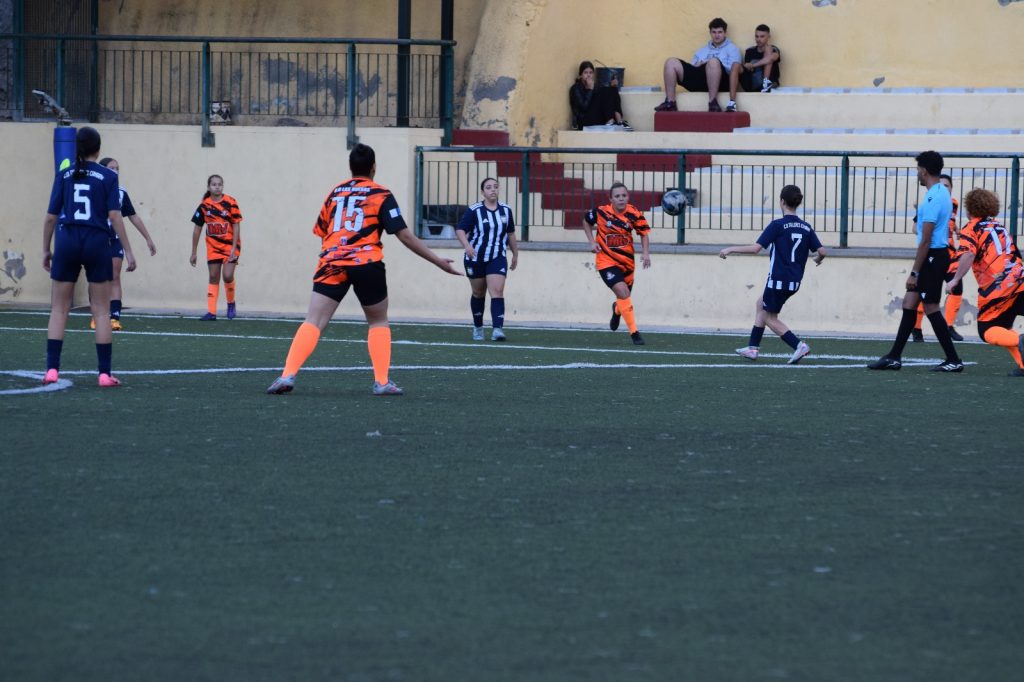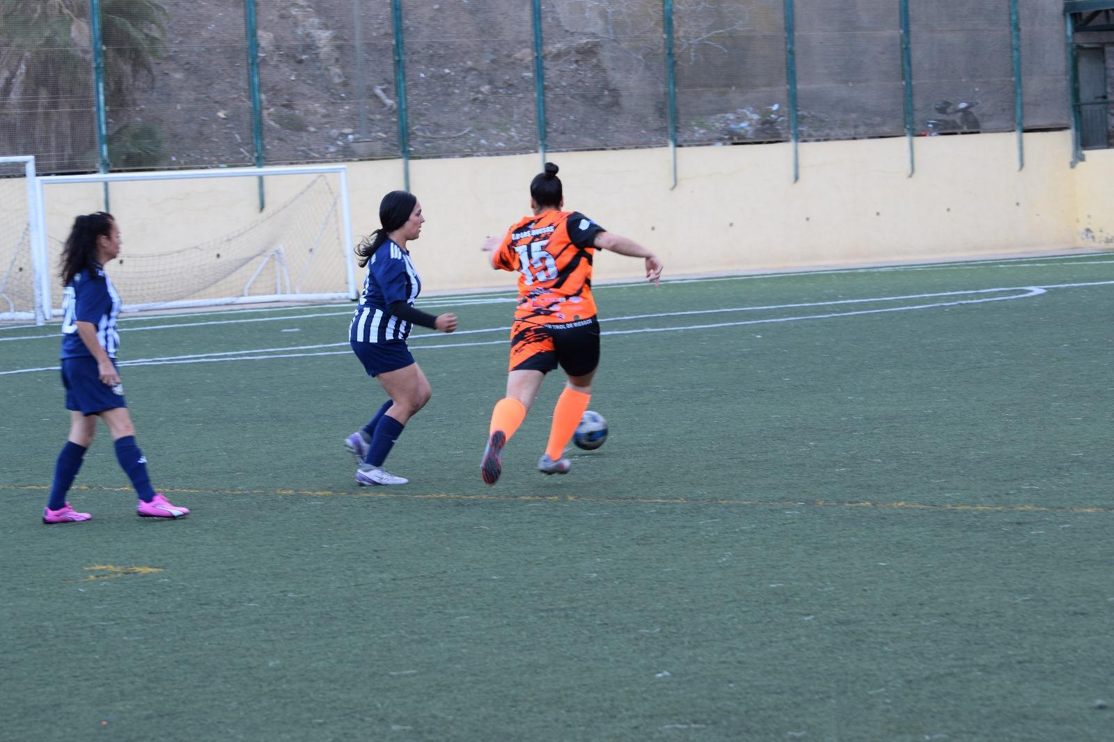 Desde el pitido inicial, el equipo visitante salió con determinación, dominando el juego y mostrando una solidez que hacía presagiar una tarde feliz. El primer gol llegó con un poco de fortuna, pero la fortuna hay que buscarla. Santana botó un córner cerrado y Yaneisy Betancor, en su intento de despejar, acabó enviando el balón al fondo de su propia portería. 0-1 y la UD Las Huesas tomaba ventaja.