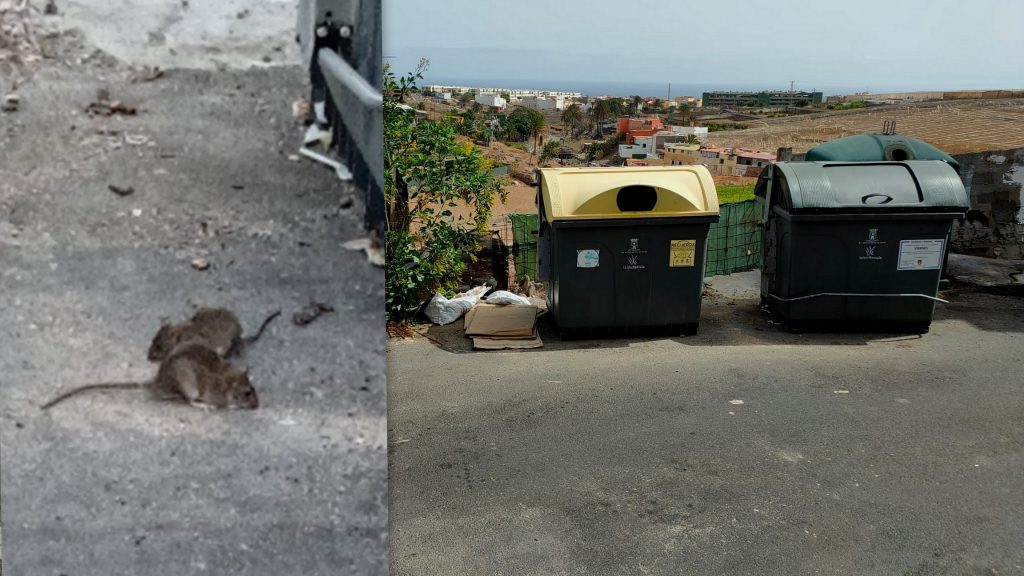 Vecinos angustiados y aterrorizados denuncian a través de ONDA GUANCHE la proliferación de enormes ratas en el barrio teldense de Lomo Cementerio. Concretamente en los contenedores situados en las calles Pelayo y Giralda. Avisan de un posible brote sanitario si no se actúa con celeridad porque la suciedad de los contenedores y falta de limpieza es alarmante. Denuncias similares están llegando de multitud de barrios de la ciudad.