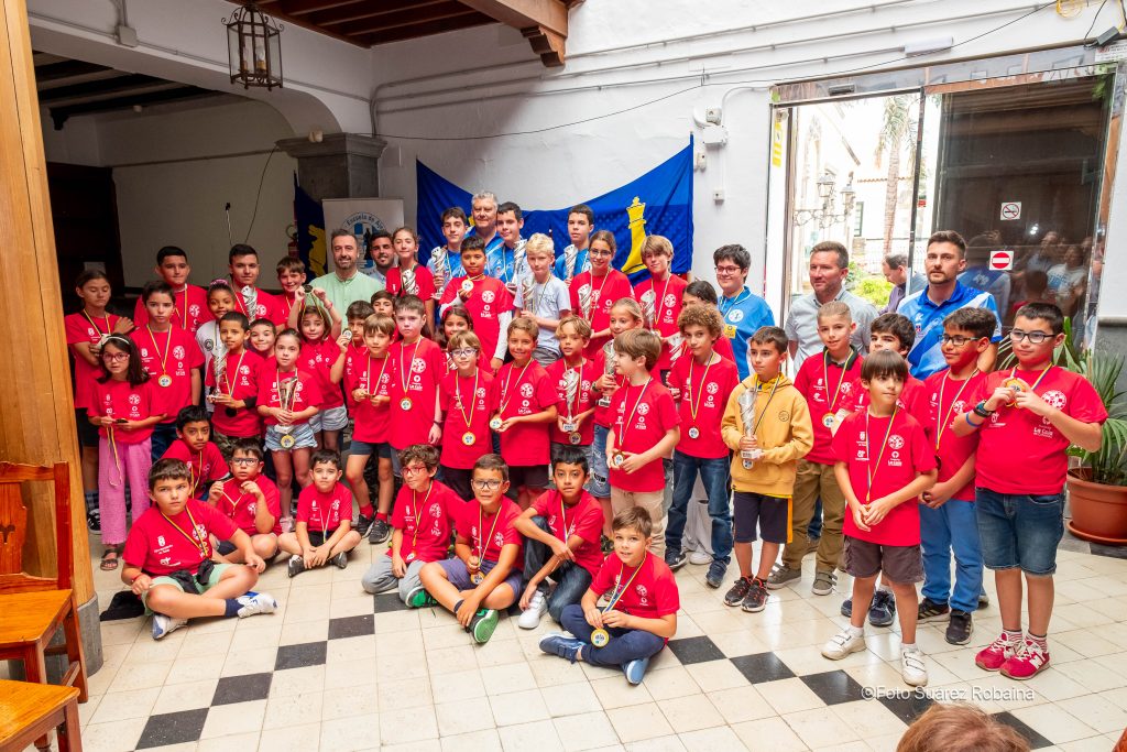 El joven teldense sub-14 se proclamó, campeón del XXVI Torneo Escolar de Ajedrez Fiestas de San Juan 2024, realizando un excelente torneo al conseguir seis puntos, sobre seis y quedar invicto. El evento deportivo se ha celebrado en un gran ambiente festivo y deportivo en el Casino la Union de Telde. El Club Ajedrez Telde los Llanos agradece al Casino la Union de Telde su colaboración en este evento, en particular a su presidente D. Alexis Monzón y a su junta directiva por permitirnos desarrollar este torneo, lo que nos ha permitido volver con la actividad ajedrecística al casino tras muchos años de inactividad ajedrecística.