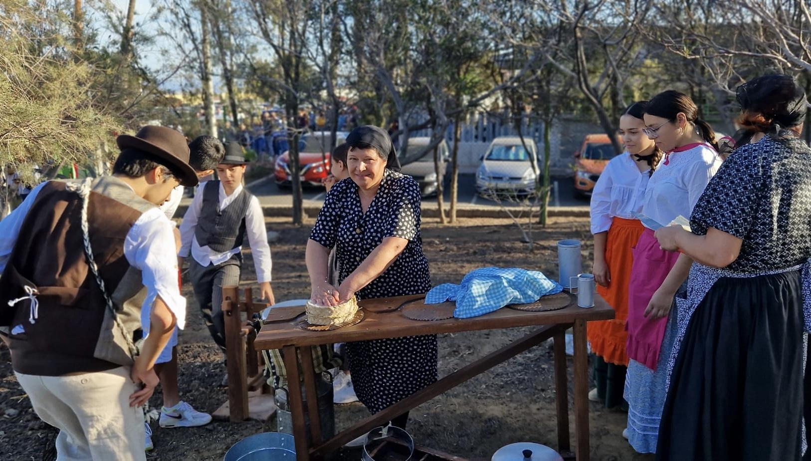 En la quesería vimos elaborar queso en directo, en la panadería los participantes terminaron de harina hasta en los ojos, las costureras tejían al sol, lo mismo que los agricultores araban la tierra junto a los alfareros y su arcilla. En el mercadillo, frutas y verduras y nuestro puesto de FUNDEO con las manualidades que se habían realizado en el taller. No faltó una enorme vaca con su ternero recién nacido y unas ovejas paseando entre la gente que hicieron las delicias de los más pequeños, que ya habían actuado cantando unos preciosos y animados villancicos.