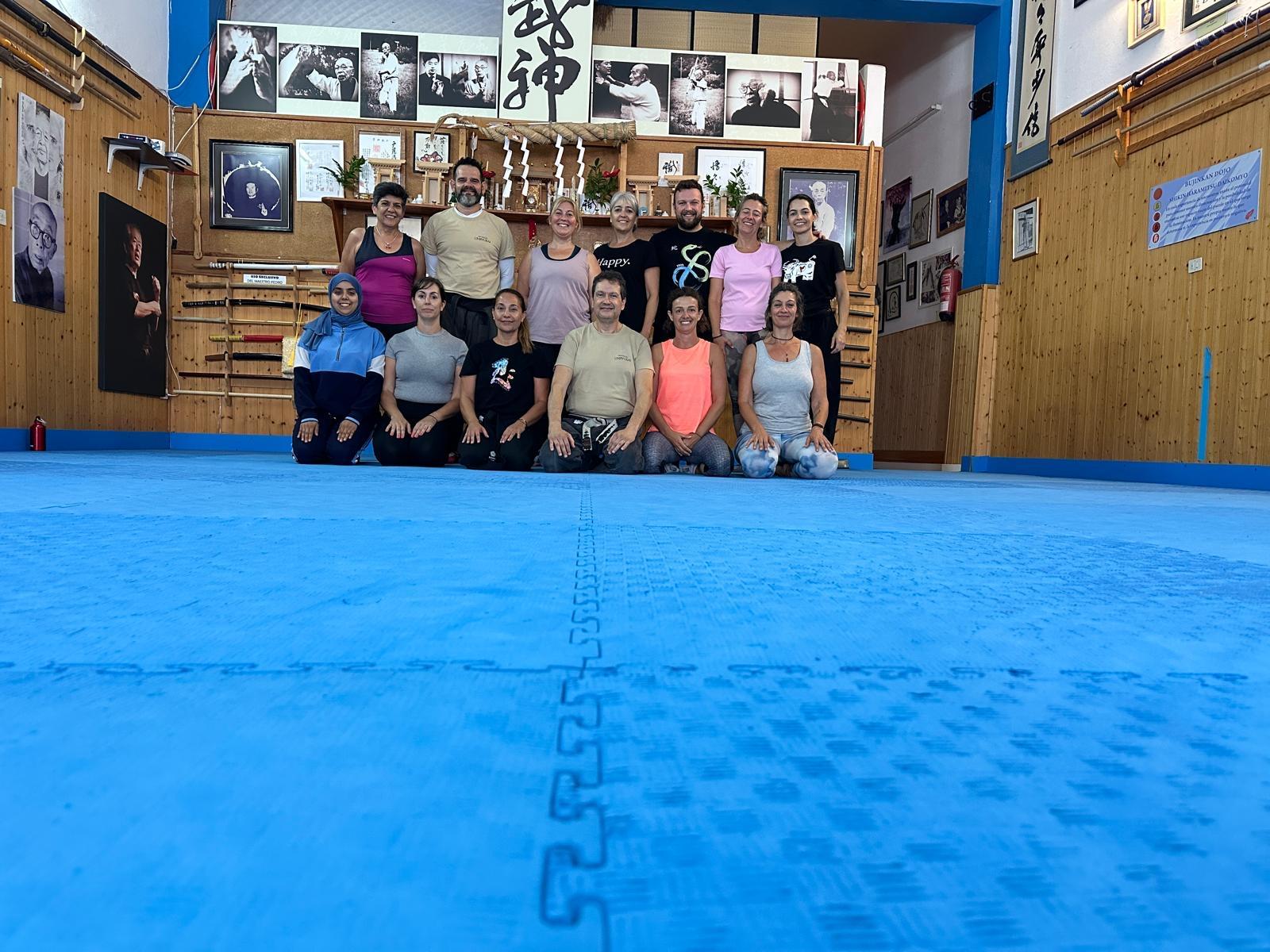 El maestro Báez acompañado por un grupo de compañeros y compañeras ha impartido un taller de protección personal a una maravilloso grupo de mujeres pertenecientes a Emca, Empresarias canarias del sureste. Aún denominado protección personal se transmite un grupo de valores bien necesarios en los tiempos actuales. El evento se desarrolló en el Centro Multidisciplinar Pedro Fleitas de la ciudad de Telde que este año celebra 38 años desde su inauguración en 1987.