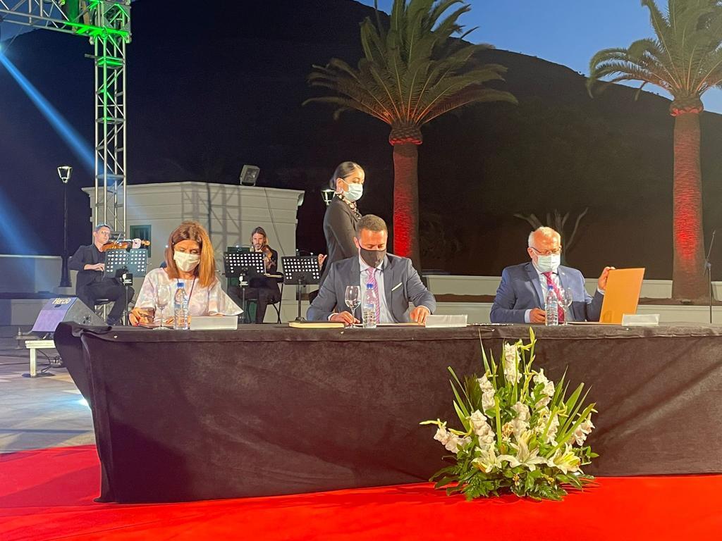 La alcaldesa de Telde, Carmen Rosa Hernández, y los alcaldes de Betancuria y de Yaiza, Marcelino Cerdeña Ruiz y Óscar Noda González, respectivamente, expresaron la alegría común de llamarse pueblos solidarios y hermanos lanzando un mensaje cálido al pueblo de la isla de La Palma que sufre por las erupciones volcánicas.