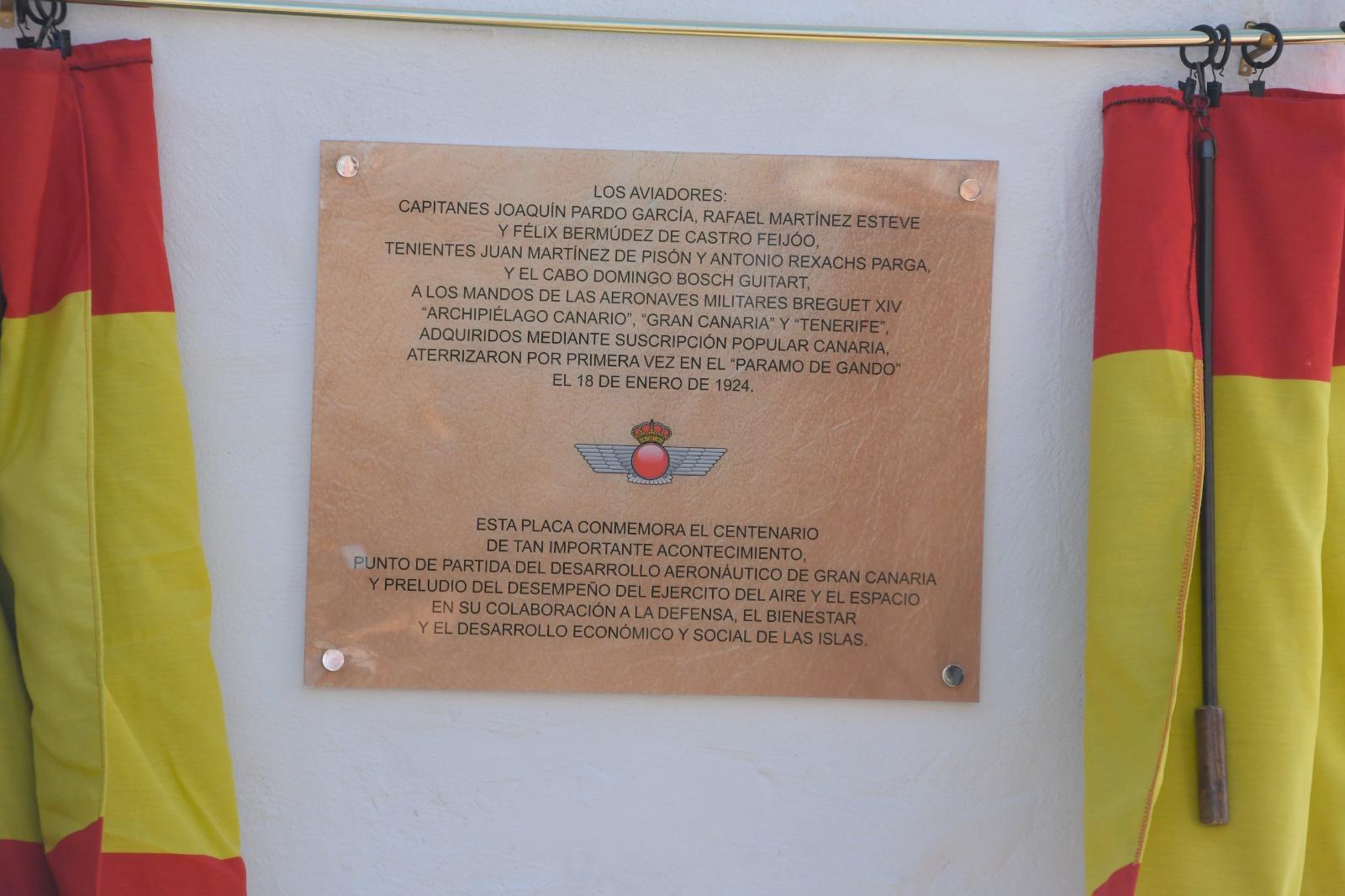 Asimismo, Juan Antonio Peña recibió una placa como recordatorio de la importancia del municipio en este evento histórico. “Es un orgullo celebrar estos 100 años desde el primer aterrizaje en Gando, lo que supuso el desarrollo aeronáutico de Gran Canaria y Canarias. Gracias en nombre de la ciudad de Telde”, declaró el primer edil.