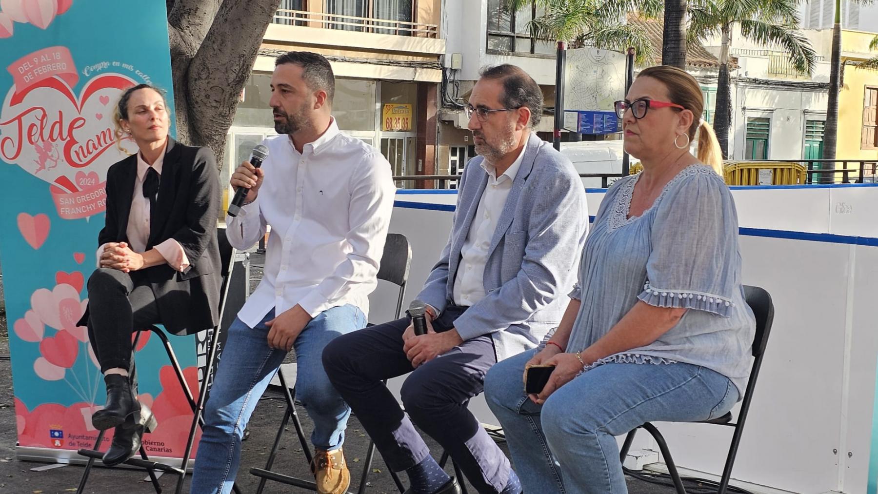El parque Franchy Roca, en San Gregorio, será este año el gran protagonista donde celebrar el día del amor y de la amistad en la ciudad. La Concejalía de Desarrollo Local, que lidera Nayra Navarro, ha dado vida a Tede enamora, un programa repleto de actividades, talleres, espectáculos y sorpresas para todas los públicos, que se presentó en la tarde de hoy miércoles con la presencia del alcalde, Juan Antonio Peña, la edil del área, el viceconsejero de Industria, Comercio y Consumo del Gobierno de Canarias, Felipe Afonso, y la presidenta de la Zona Comercial, Natividad Suárez. Como detalles a destacar, habrá una pista de 200 metros cuadrados de patinaje sobre hielo artificial en la misma plaza, para todas las edades, y un tren familiar que recorrerá San Gregorio.