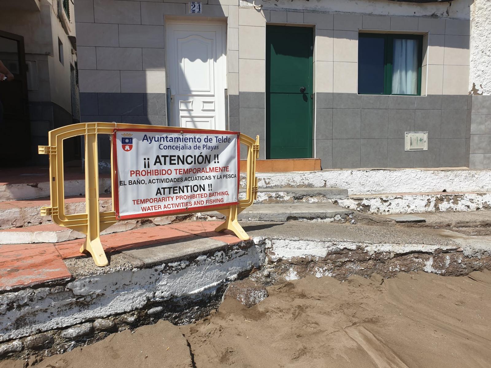 El cierre, que se produce de manera preventiva y provisional, se realiza para evitar daños de los bañistas con los restos de tuneras y residuos vegetales que han llegado hasta el agua de esta zona del litoral teldense arrastrados por las lluvias registradas este domingo.