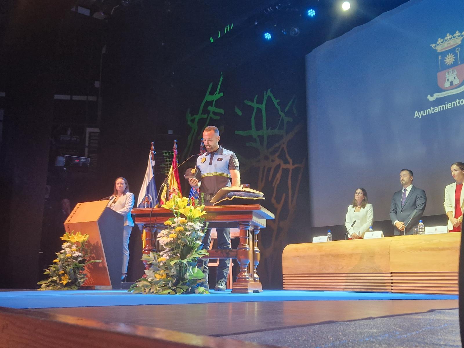 Una vez  situados todos en el escenario, tras el juramento o promesa, el alcalde tomó la palabra y, mediante un emotivo discurso, destacó la importancia de las nuevas incorporaciones en la Policía Local. «La ciudad les acoge, les siente parte de ella y espera de ustedes la lealtad y el compromiso que se merece», resaltó.