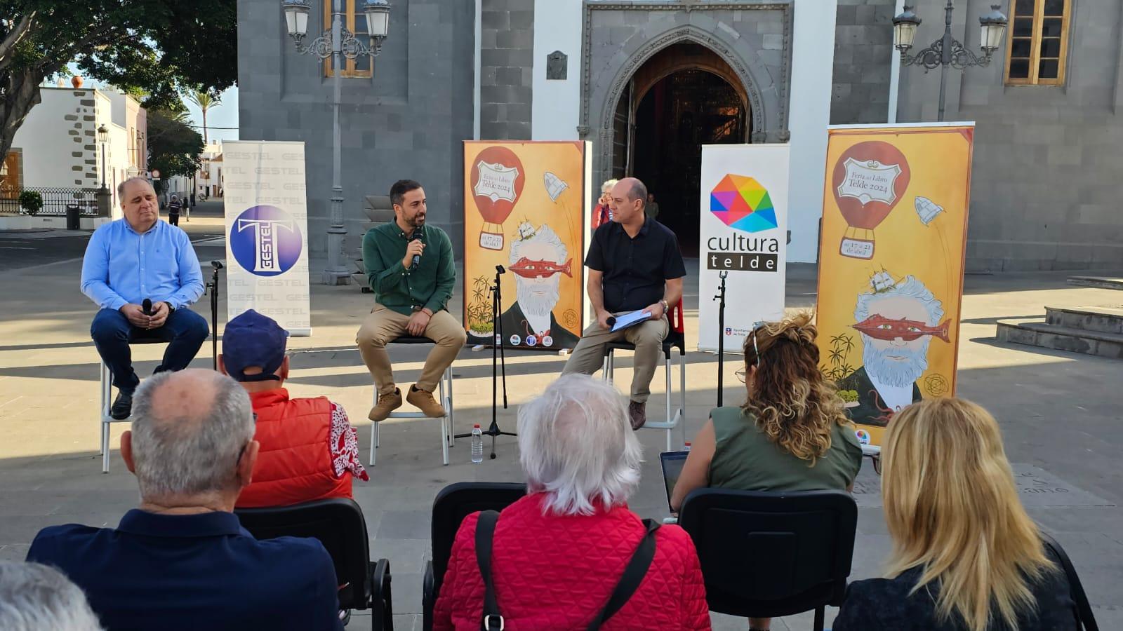 El alcalde de Telde, Juan Antonio Peña, el concejal de Cultura, Juan Martel, y el gerente de Gestel, Jesús Suárez, presentaron en la plaza de San Juan, la nueva programación cultural que dinamizará la ciudad hasta el mes de julio. Así, se trata de una combinación de actos pensados para todos los públicos, que tocan todas las disciplinas artísticas y que, además, “estarán tanto en los teatros como a pie de calle, porque apostamos por trasladar también la cultura a los maravillosos espacios abiertos que tenemos y por promocionar Telde como ciudad cultural”, resalta el primer edil.