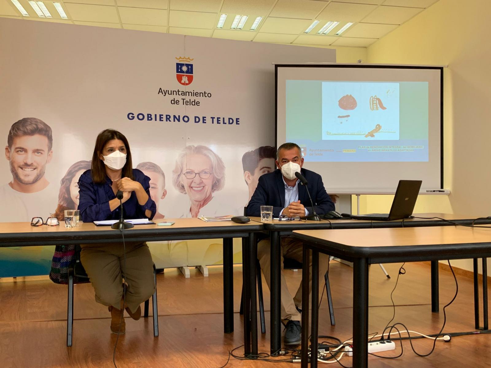 La alcaldesa, Carmen Hernández, y el concejal de Parques y Jardines, Álvaro Monzón, presentaron este lunes en rueda de prensa el Plan de Renovación Integral del Mobiliario en Áreas Infantiles Adaptadas, un proyecto que incluye además de los 91 parques para niños.