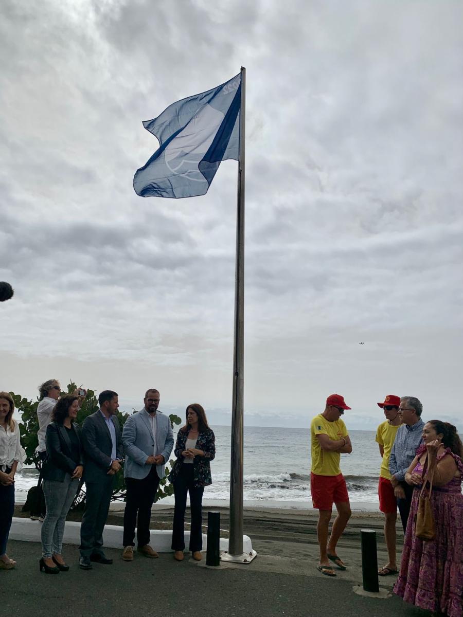 Las cuatro banderas azules otorgadas a las playas de Salinetas, Melenara, Hoya del Pozo y La Garita ondean desde este lunes en sus mástiles. Las insignias se izaron en un acto representativo llevado a cabo por la alcaldesa de Telde, Carmen Hernández, y el edil de playas, Jonay López, en La Garita.