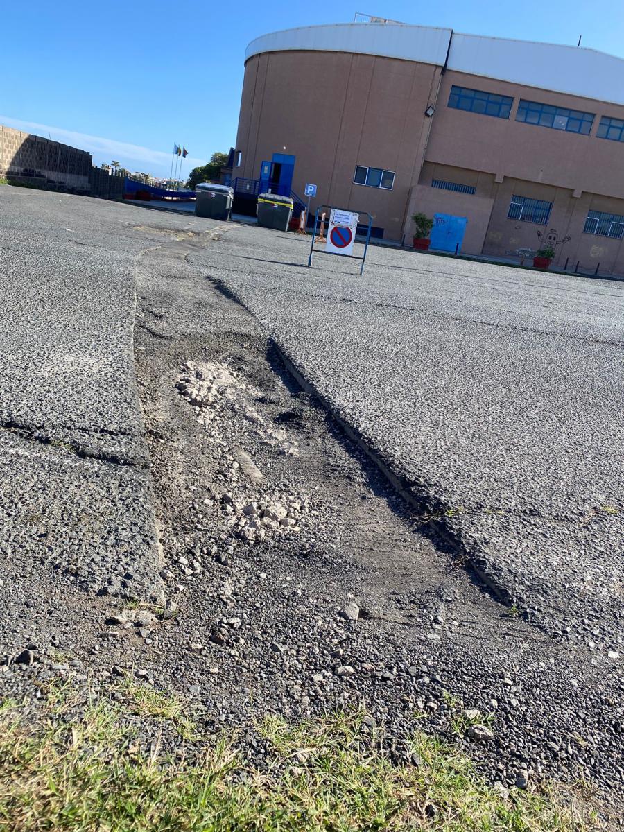 Sin embargo, la imagen que mostrará Telde al resto del país, será la de un exterior del Pabellón abandonado repleto de baches y socavones. Esperemos que las guaguas que traigan a los diferentes equipos a la competición tengan un chófer con la habilidad suficiente para evitar destrozar el vehículo en los mismos y que los deportistas sufran lesiones en el interior de la guagua y no en la cancha.