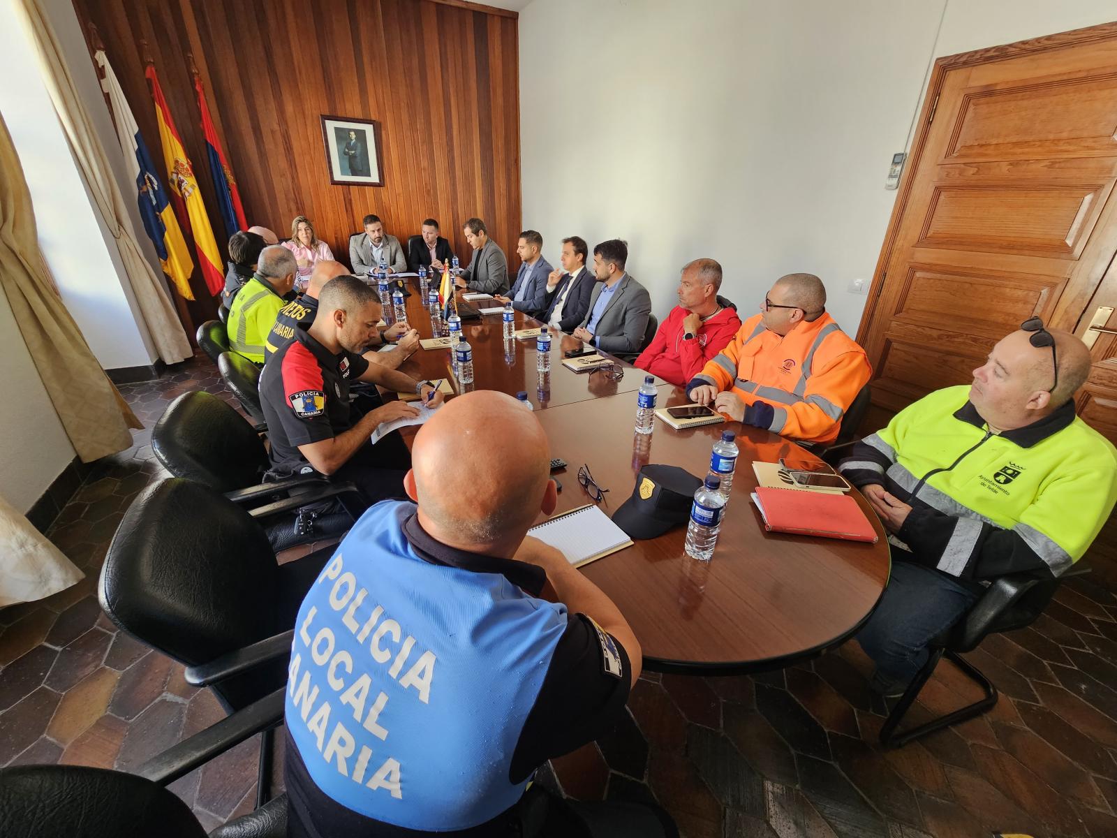 En cuanto a las personas que conformaron la reunión principal, estuvieron presentes, junto a Juan Antonio Peña, la primera teniente de alcalde y concejala de Playas y Limpieza Viaria, María Calderín; el concejal de Seguridad Ciudadana, Miguel Rodríguez; y los ediles de Vías y Obras y Urbanismo, Iván Sánchez y Juan Francisco Jiménez, respectivamente. Además, el jefe de la Policía Local de Telde, Félix Ramos; el responsable de Unidron del cuerpo local, José Florido; el operario municipal, Marcos Monzón; el responsable de Aguas de Telde, Luis Rua; el jefe de agrupación de Protección Civil, Yeray Martel; en representación de Valoriza, Pablo Grande; de Proactiva, Juan Manuel Dávila, Miguel Ángel y José Luis Pérez; el inspector jefe de la Policía Nacional, Raúl Sanabria; el sargento primero de la Guardia Civil, Santiago Cayo; el jefe de la Unidad de Seguridad Ciudadana de la Policía Canaria, Ángel Acosta; el oficial del servicio del Consorcio de Bomberos, Mario Beltrán; y por del Cabildo de Gran Canaria, el jefe de servicio del área de Emergencias, Carlos Velázquez.