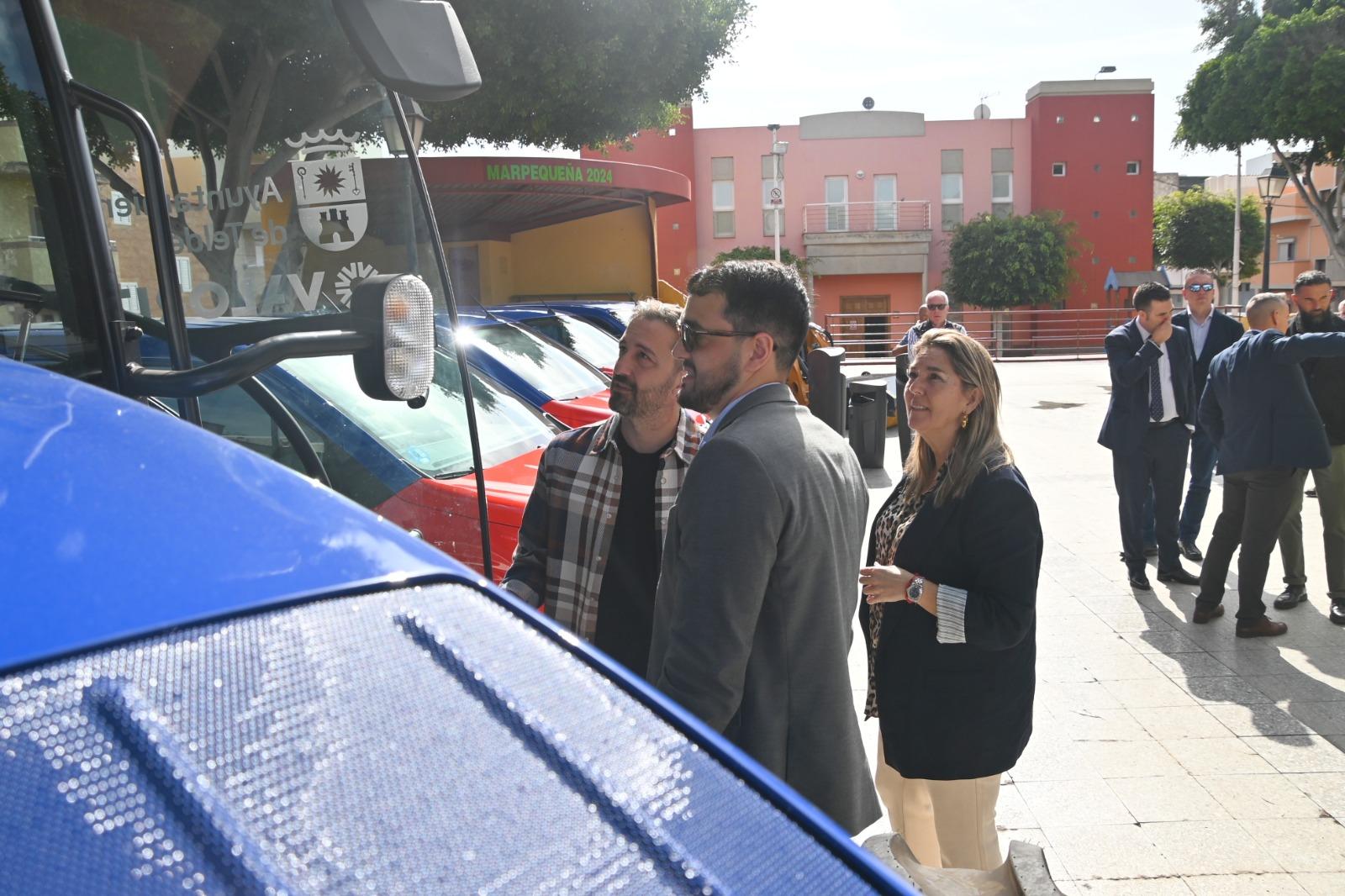 Durante la presentación de este martes se dieron a conocer los segundos equipos que han entrado en funcionamiento. Un lote que engloba cuatro furgonetas eléctricas de las 16 previstas, que se emplearán en labores de barrido manual motorizado y de supervisión de los servicios, y un tractor que se usará en labores de cribado mecánico en las playas del municipio.