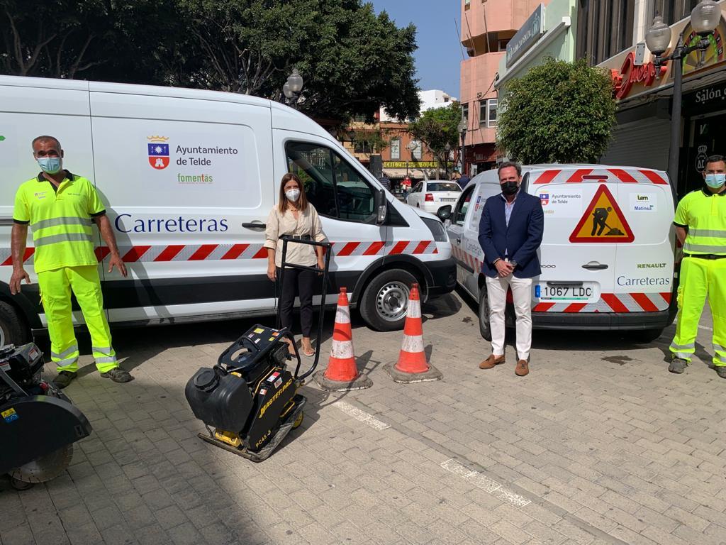 El concejal de Vías y Obras, Eloy Santana, detalló que en este momento están trabajando en las calles de la ciudad dos equipos, uno formado por cuatro operarios (un gruista, un capataz, un peón especializado y un peón ordinario), un camión grúa, una furgoneta, un generador, un compactador y martillo neumático y diversa maquinaria pequeña. El segundo equipo está compuesto por un peón especializado y otro ordinario, un furgón de 3,5 toneladas, un generador, un compactador, un martillo neumático, una cortadora de asfalto y maquinaria pequeña.